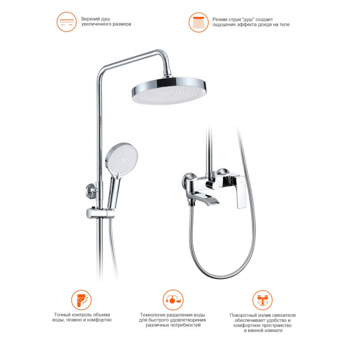 • Верхний душ - ⌀255мм (пластик/силикон)