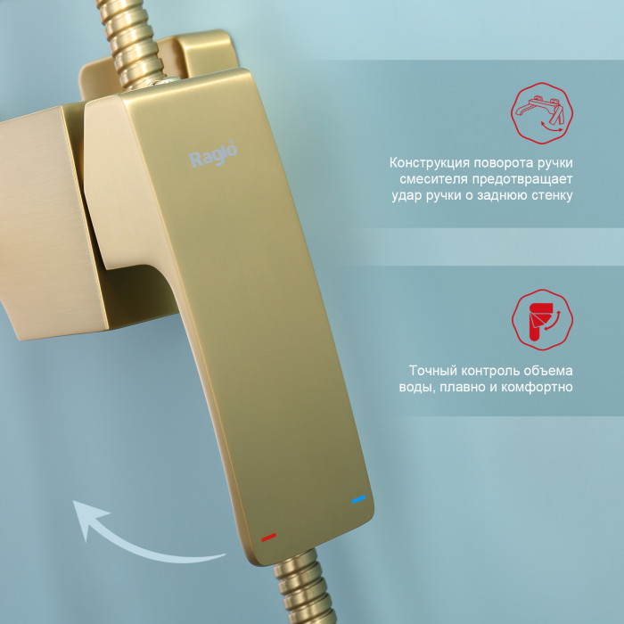 Душевая система Raglo для ванны и душа R02.24.03 золотой сатин Основные характеристики: