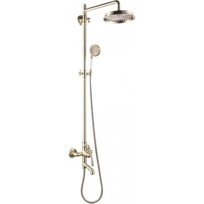 смеситель, верхний душ, штанга с держателем душевой лейки, душевая лейка, шланг, эксцентрики