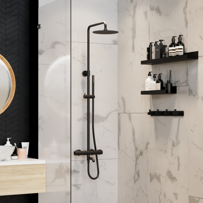 Душевая система с термоcтатом, поворотный излив, брашированный чёрный PVD PAINI 78PZ687THSSD250F1B
