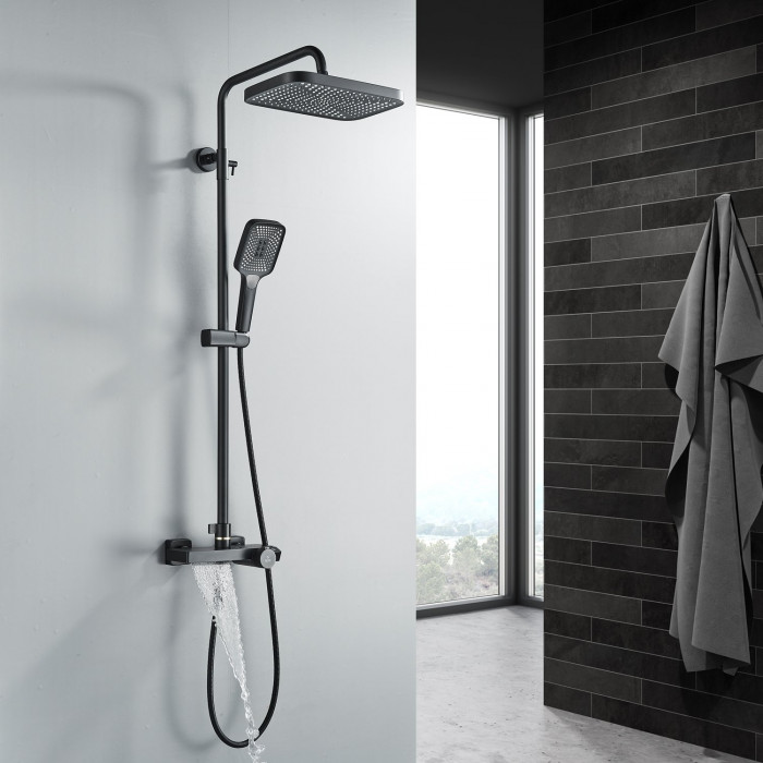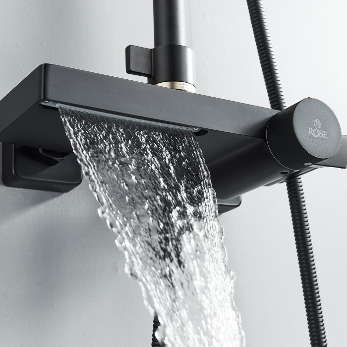 Душевая система с термостатом Rose R1896H-6, черный