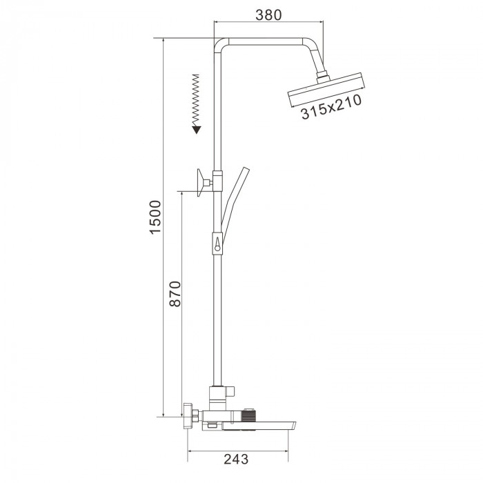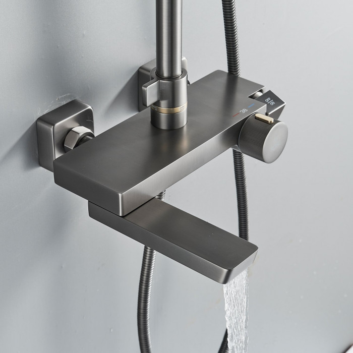 Душевая система с термостатом Rose R1896T, пепельный