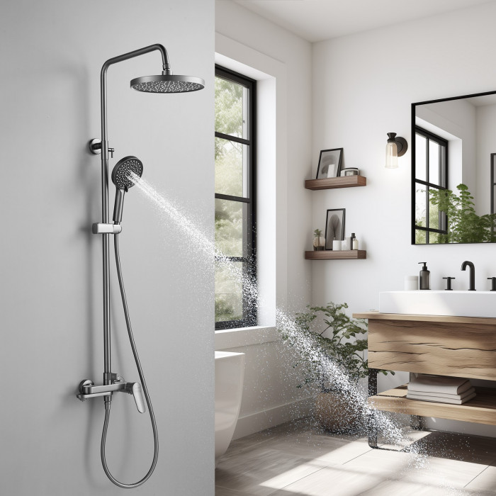 Душевая система Shevanik S4336T, оружейная сталь