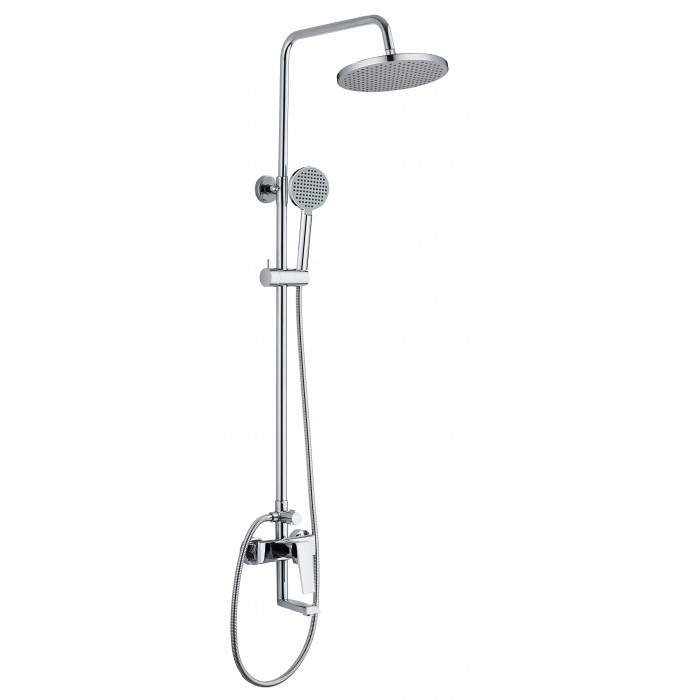 Душевая система со смесителем VST113 VODA Россия Выполнена из латуни, нержавеющей стали и ABS-пластика. Верхняя лейка регулируется под нужным углом засчет шарнирного крепления. Диаметр верхнего душа 220 мм. Вынос верхнего душа 330 мм.Круглая ручная лейка имеет один режим струи. Диаметр 100 мм. Ручная лейка устанавливается на держатель, регулируемый по высоте, повороту и наклону. Лейки имеют систему защиты от известковых отложений Self-Clean Device. Шланг для подключения к смесителю и душевой изготовлены из металла с двойной сцепкой (шланг 150 см и 40 см). Телескопическая штанга для душа регулируется по высоте от 900 до 1400 мм. Механический переключатель между верхним душем и ручной лейкой сделан из латуни. Доп.функция дивертора: является надежным креплением к стене. Смеситель изготовлен из латуни, комплектуется керамическим картриджем. Керамический переключатель потока позволяет с комфортом пользоваться верхней и ручной лейкой даже при низком напоре Цвет: хром