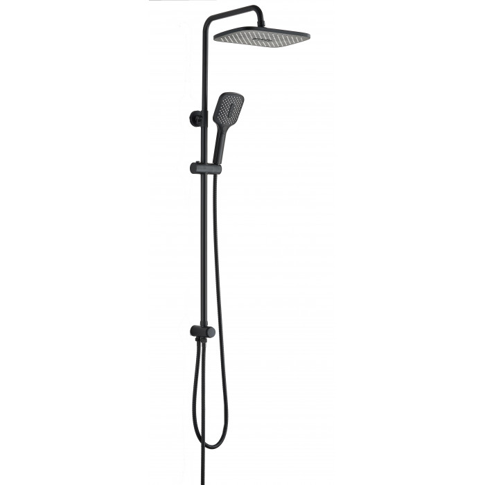 Душевая система VST1000-10Black VODA Россия Нержавеющая сталь Выдвижная телескопическая стойка (нерж.сталь, черный): высота штанги 1400 мм, диаметр 22 мм, вылет верхнего душа 330 мм, держатель лейки плавающий FightFix. Лейка верхнего душа (ABS-пластик, черный): на подвижном шарнире, размер 200*300 мм, форсунки Self-Clean Device, Eco system. Ручная лейка: размер 110*110 мм. Переключатель с ручного на верхний душ: кнопочный. Комплектация: душевой шланг 150 см и шланг для подключения к смесителю (металл), монтажный комплект Цвет: черный