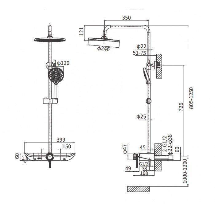 Душевая стойка Arrow AD3336SHMB с термостатом, черный матовый