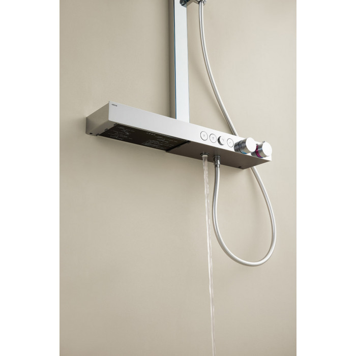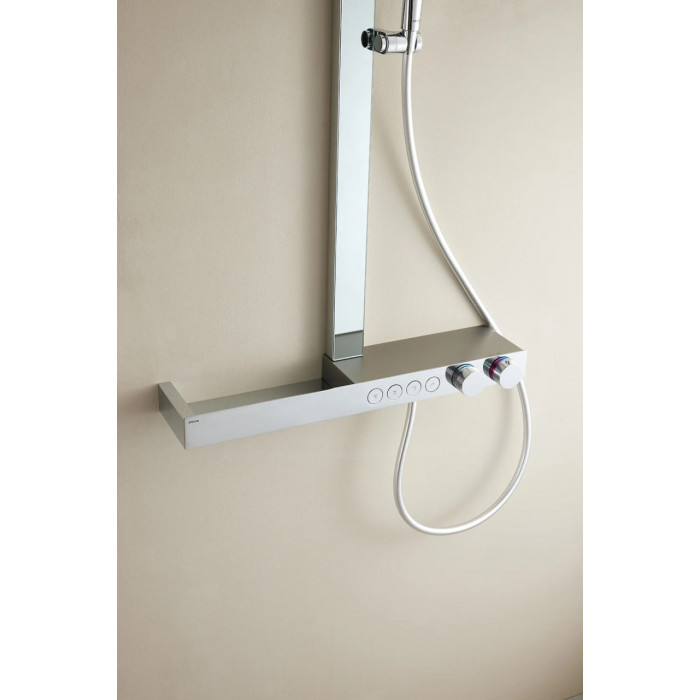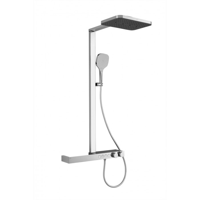 AMG14GH872U1CP Душевая стойка ARROW с термостатом, хром верхний душ, душевая штанга, кронштейн для верхнего душа, лейка, шланг, Излив, Шланговое подключение латунь 3 квадратная есть 3 без смесителя