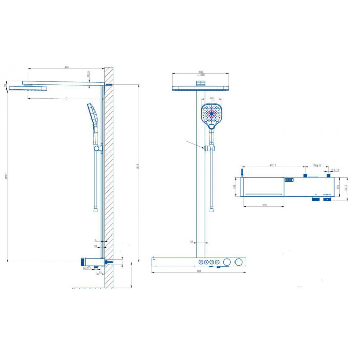 Диаметр верхнего душа: 360x240 мм