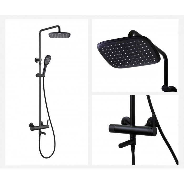 Душевая стойка АВАНГАРД 2039H черный Bronze de Luxe 2039H современный латунь черный матовая смеситель, штанга, шланг, верхний душ, ручной душ, крепления ИТАЛИЯ