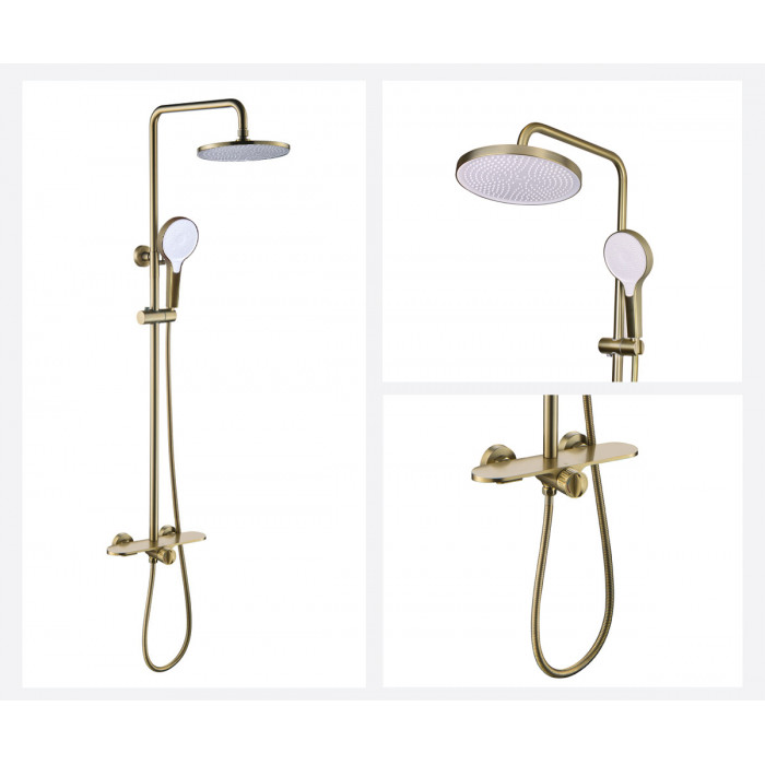 Душевая стойка каскадный излив АЙКОН 80112CG золотой Bronze de Luxe 80112CG современный латунь золотой матовая Смеситель, штанга, лейка верхняя, лейка ручная, шланг, крепления, комплектующие ИТАЛИЯ
