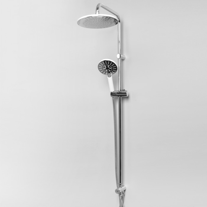 Каждый Душевая система отличается своим характерным дизайн Душевая насадка для комплекта А039 производится из ABS-пластика. Форсунки из силикона с системой защиты от известковых отложений. Насадка крепится к штанге при помощи шарнирного соединителя, внутрь которого встроен сетчатый аэратор для равномерного распределения воды. Также шарнирный соединитель позволяет менять угол наклона душевой насадки от 0 до 22 градусов.