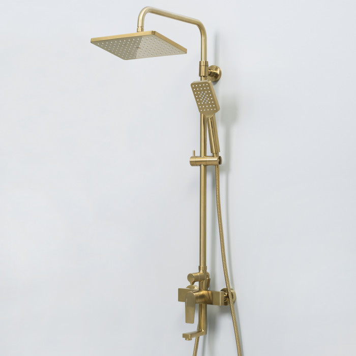 Душевая система WasserKRAFT Aisch A15501 золото Латунь, ABS-пластик PVD-покрытие "матовое золото" Душевая насадка 260x188 мм, 117 форсунок, ABS-плас Душевые комплекты WasserKRAFT сочетают в себе комфорт, удовольствие и стиль.