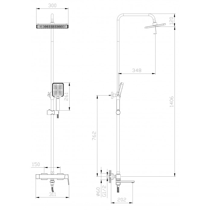 Тропическая душевая система RUSH ST4235-90 хром рычажное латунь