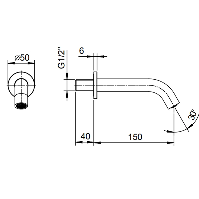 Излив Fantini Nostromo 50 02 8432 Хром Fantini Nostromo Излив для ванны, настенный,излив 15 см, цвет хром