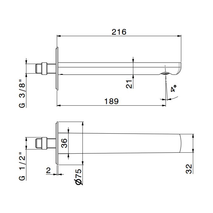 Излив Newform Haka 72037.59.097 Золото Newform Haka Излив для раковины из стены, длина 189 мм, с подключением на 1/2”, цвет: PVD brushed gold