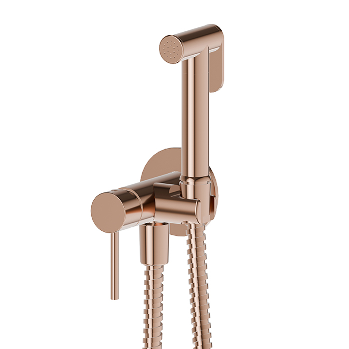 Излив Newform Set doccia 886E.59.067 Медь Newform Idroscopini Смеситель с гигиеническим душем, держатель, шланг 120 см, наружная часть (для 31093) цвет: PVD Br. Copper Bronze