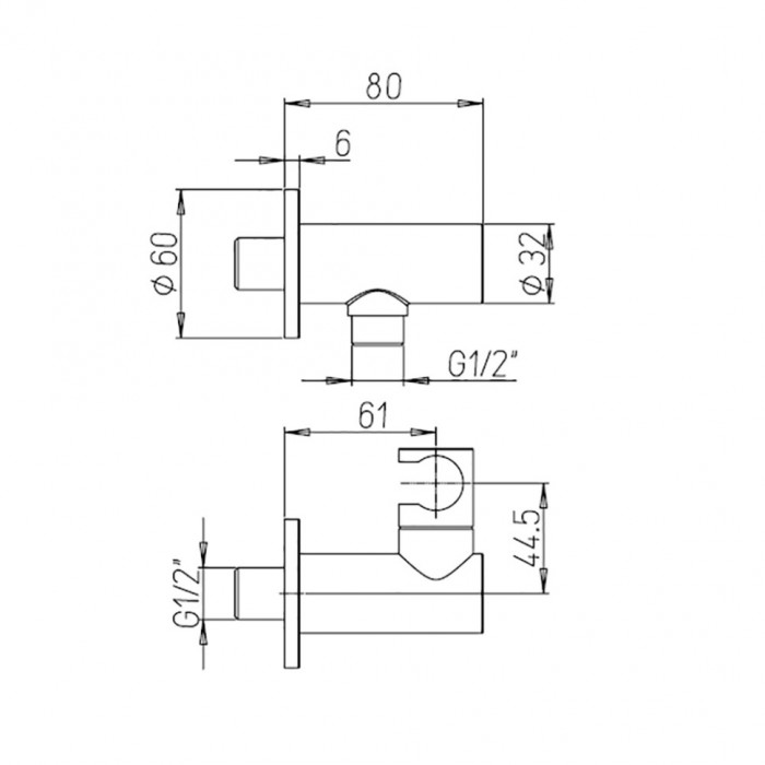 Вывод для воды PAINI круглый, с держателем дл лейки, хром (CR) 50CR480T