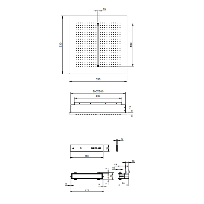 Верхний душ Fantini Acqua Zone 75 38 C031 Матовый хром Fantini Acqua Zone Dream Верхний душ 530х530 мм, потолочный, хромотерапия 4 цв.,Дождь, Ливень,цвет: Блестящая натуральная сталь
