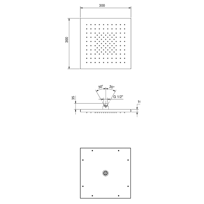 Верхний душ Fantini Acquafit 79 P6 K053 Золото FANTINI Верхний душ 300х300 мм., цвет Matt British Gold PVD