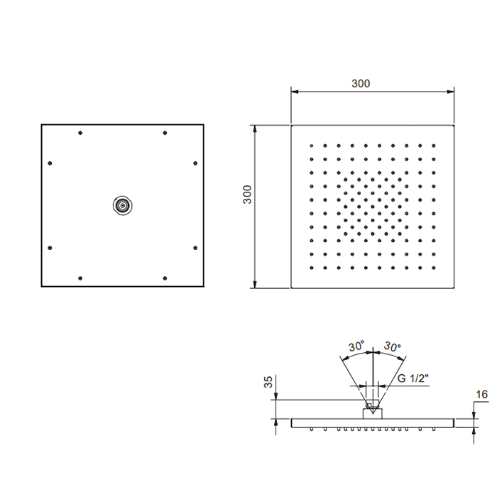 Верхний душ Fantini Mint 79 38 K053 Никель FANTINI Верхний душ 300х300 мм., цвет Блестящая натуральная сталь