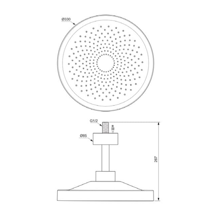 Верхний душ Ideal Standard Solos A7888AA Хром Ideal Standard Solos 1-функц.(Rain) верхний душ 33см, с LED-подсветкой, с потолочным держателем 15см, цвет: хром