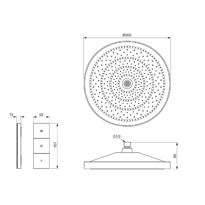 Верхний душ Ideal Standard Solos A7889A5 Ideal Standard Solos 3-функц.(Rain, Silkrain, SecondSkin) верхний душ 30см, цвет: PVD Magnetic Grey