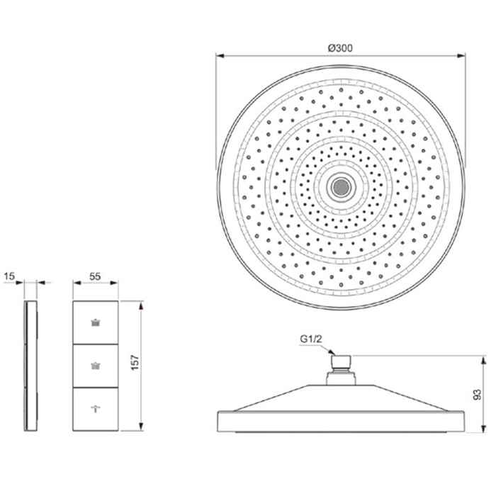 Верхний душ Ideal Standard Solos A7889AA Хром Ideal Standard Solos 3-функц.(Rain, Silkrain, SecondSkin) верхний душ 30см, цвет: хром