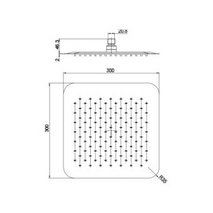 Верхний душ PAINI 300 мм, квадратный, ультратонкий, хром (CR) 50CR759UPQ30E