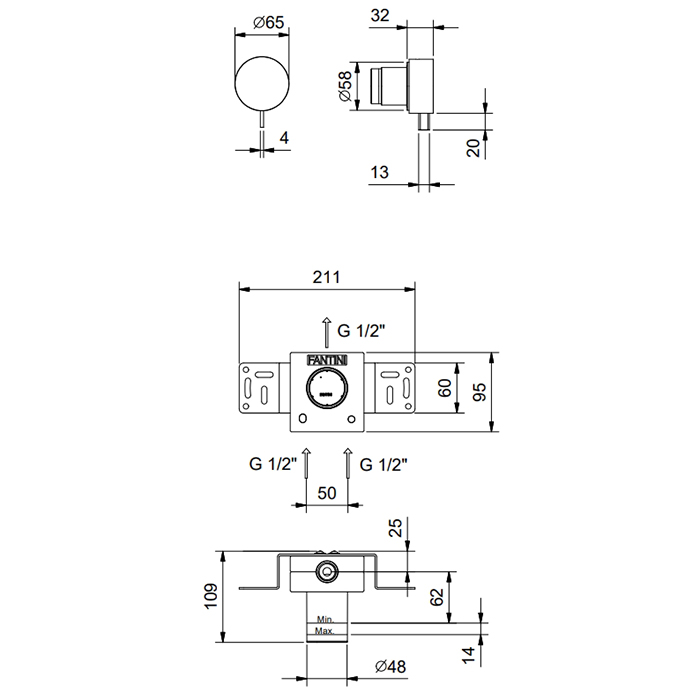 Верхний душ Fantini AF/21 27 P6 A763B Золото Fantini AF/21 Встраиваемый смеситель для душа (наружняя часть), на 1 источник. цвет: Matt British Gold PVD