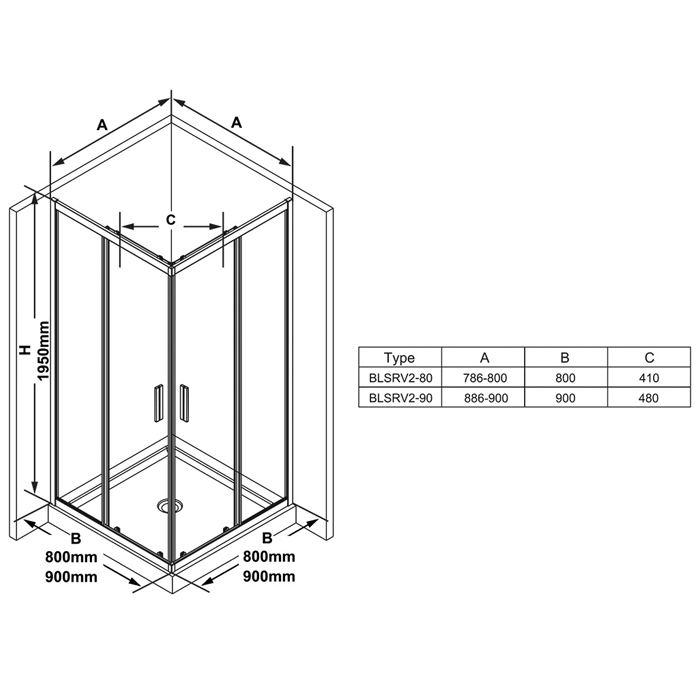 Дверь для угла Ravak Blix Slim X1LM70C00Z1 RAVAK BLIX SLIM Душевое ограждение BLSRV2-90 квадратное, блестящий + транспарент