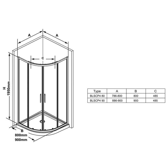 Четверть круга Ravak Blix Slim X3BM70C00Z1 RAVAK BLIX SLIM Душевое ограждение BLSCP4-90 полукруглое, блестящий + транспарент