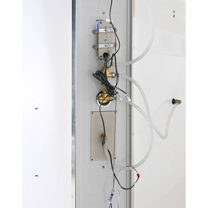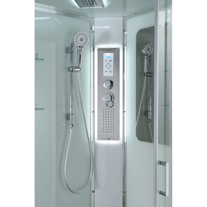Стильная душевая кабина AvaCan сочетает в себе высокую функциональность, практичность и надежность. При изготовлении применяется безопасное закаленное стекло, надежно фиксируемое алюминиевым профилем.Профиль сделан из алюминия повышенной прочности. Сборка без силикона (увеличивает срок службы, защищает от протечек), внутренняя сборка (облегчает установку и ревизию; позволяет установить в ограниченном пространстве и обойтись без демонтажа других сантехнических приборов), смеситель резьбовой (без хомутов). Двойные металлические ролики дверей (распределение нагрузки на два ролика, увеличивают срок службы). Душевая штанга(позволяет регулировать по высоте ручную лейку), ручная арома-лейка с витамином С (картридж в комплекте,есть возможность замены или удаления картриджа), полочки(из стекла, с ограничителем), сифон с гидрозатвором, сенсорный пульт управления с функциями: блютуз, LED подсветка, радио, вытяжка, гидромассаж спины, тропический (верхний) душ.