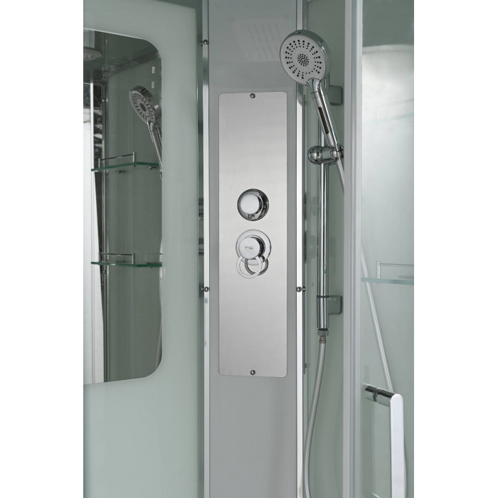 Стильная душевая кабина AvaCan сочетает в себе высокую функциональность, практичность и надежность. При изготовлении применяется безопасное закаленное стекло, надежно фиксируемое алюминиевым профилем. Профиль сделан из алюминия повышенной прочности. Сборка без силикона (увеличивает срок службы, защищает от протечек), внутренняя сборка (облегчает установку и ревизию; позволяет установить в ограниченном пространстве и обойтись без демонтажа других сантехнических приборов), смеситель резьбовой (без хомутов). Двойные металлические ролики дверей (распределение нагрузки на два ролика, увеличивают срок службы). Душевая штанга(позволяет регулировать по высоте ручную лейку), ручная арома-лейка с витамином С (картридж в комплекте,есть возможность замены или удаления картриджа), полочки(из стекла, с ограничителем), сифон с гидрозатвором.