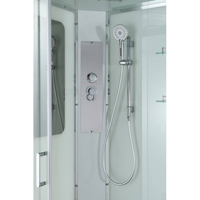 Стильная душевая кабина AvaCan сочетает в себе высокую функциональность, практичность и надежность. При изготовлении применяется безопасное закаленное стекло, надежно фиксируемое алюминиевым профилем. Профиль сделан из алюминия повышенной прочности. Сборка без силикона (увеличивает срок службы, защищает от протечек), внутренняя сборка (облегчает установку и ревизию; позволяет установить в ограниченном пространстве и обойтись без демонтажа других сантехнических приборов), смеситель резьбовой (без хомутов). Съемный экран поддона (позволяет осуществлять подключение и ревизию сифона).Двойные металлические ролики дверей (распределение нагрузки на два ролика, увеличивают срок службы). Душевая штанга(позволяет регулировать по высоте ручную лейку), ручная арома-лейка с витамином С (картридж в комплекте,есть возможность замены или удаления картриджа), полочки(из стекла, с ограничителем), сифон с гидрозатвором.