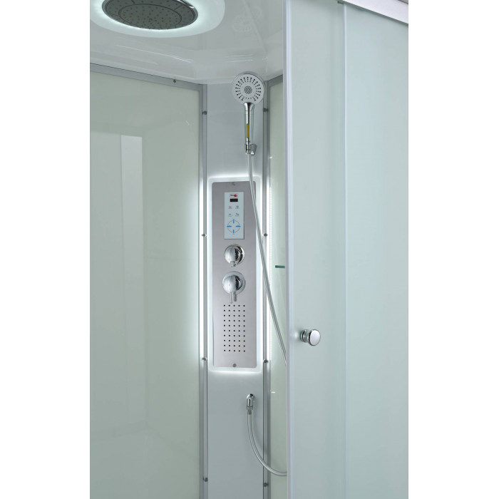 Стильная душевая кабина AvaCan C 3012L LED сочетает в себе высокую функциональность, практичность и надежность. При изготовлении применяется безопасное закаленное стекло толщиной 4 мм (матовое), надежно фиксируемое алюминиевым профилем. Сборка без силикона (увеличивает срок службы), внутренняя сборка(облегчает установку и ревизию; позволяет установить в ограниченном пространстве), смеситель резьбовой (без хомутов). Съемный экран поддона (позволяет осуществлять ревизию сифона). Цвет профиля матовый хром. Двойные металлические ролики дверей (увеличивают срок службы).В комплекте : полочка, тропический (верхний) душ, арома-лейка с витамином С (картридж съемный), сенсорный пульт (блютуз, радио, LED подсветка в крыше и в центральной панели, вентелятор.)