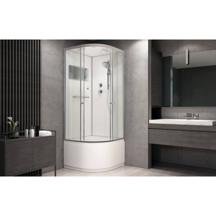 Стильная душевая кабина с внутренней сборкой AvaCan D511S сочетает в себе высокую функциональность, практичность и надежность. Для изготовления применяют безопасное закаленное стекло толщиной 4 мм, надежно фиксируемое алюминиевым профилем. Цвет профиля хром. В комплекте встроенное сидение, сифон, крючок, полочка, зеркало, смеситель, переключатель режимов, передний съемный экран, донный клапан (клик-клак), душевой гарнитур, тропический (верхний) душ.