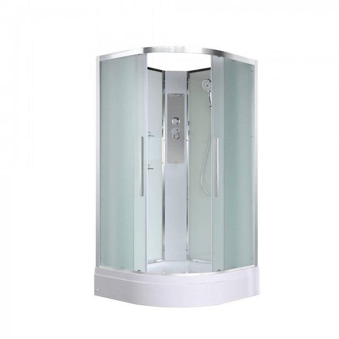 Стильная душевая кабина AvaCan сочетает в себе высокую функциональность, практичность и надежность. При изготовлении применяется безопасное закаленное стекло, надежно фиксируемое алюминиевым профилем. Профиль сделан из алюминия повышенной прочности. Сборка без силикона (увеличивает срок службы, защищает от протечек), внутренняя сборка (облегчает установку и ревизию; позволяет установить в ограниченном пространстве и обойтись без демонтажа других сантехнических приборов), смеситель резьбовой (без хомутов). Съемный экран поддона (позволяет осуществлять подключение и ревизию сифона).Двойные металлические ролики дверей (распределение нагрузки на два ролика, увеличивают срок службы). Душевая штанга(позволяет регулировать по высоте ручную лейку), ручная арома-лейка с витамином С (картридж в комплекте,есть возможность замены или удаления картриджа), полочки(из стекла, с ограничителем), сифон с гидрозатвором.