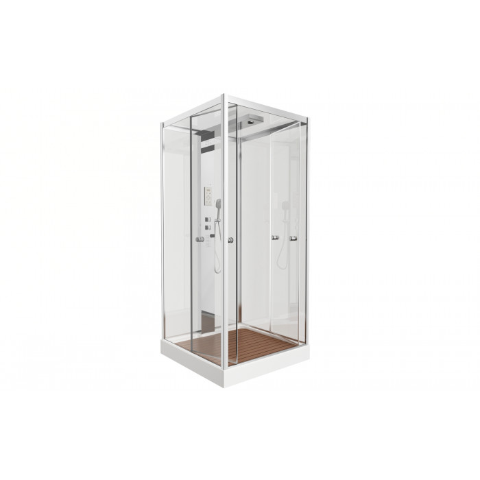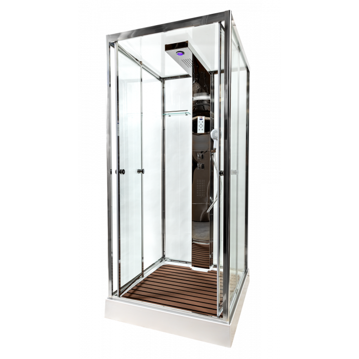 Стильная душевая кабина с внутренней сборкой AvaCan Z111 с баней сочетает в себе высокую функциональность, практичность и надежность. Для изготовления применяют безопасное закаленное стекло толщиной 6 мм, надежно фиксируемое алюминиевым профилем. Цвет профиля хром. В комплекте душевой гарнитур, тропический (верхний) душ, гидромассажные форсунки, деревянная вставка в поддон.