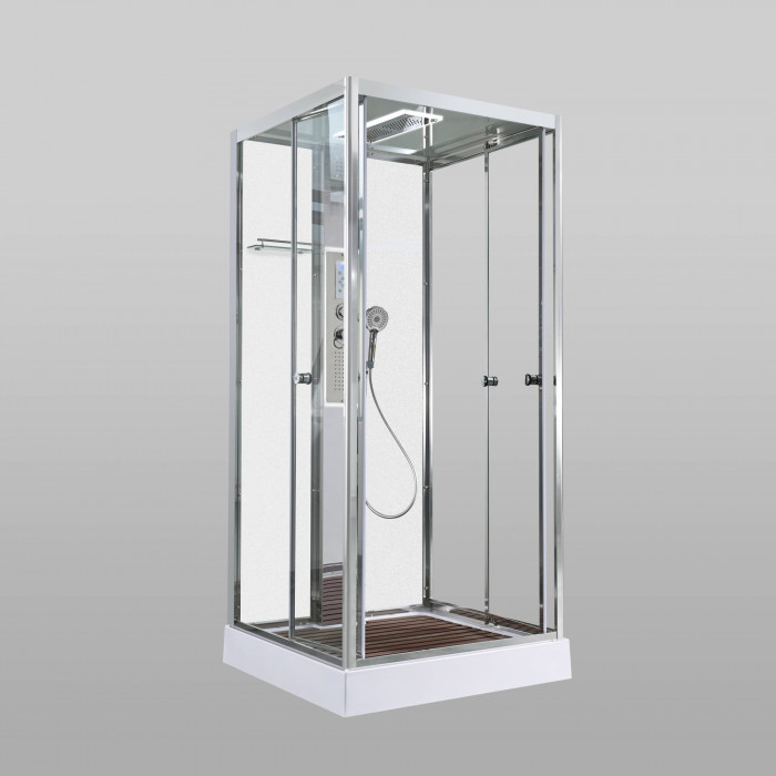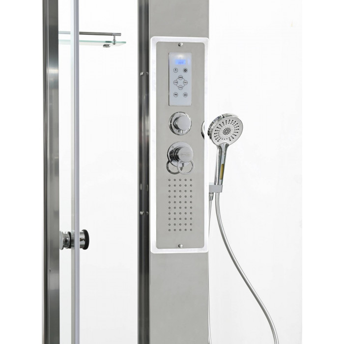 Стильная душевая кабина AvaCan сочетает в себе высокую функциональность, практичность и надежность. При изготовлении применяется безопасное закаленное стекло, надежно фиксируемое алюминиевым профилем.Профиль сделан из алюминия повышенной прочности. Сборка без силикона (увеличивает срок службы, защищает от протечек), внутренняя сборка (облегчает установку и ревизию; позволяет установить в ограниченном пространстве и обойтись без демонтажа других сантехнических приборов), смеситель резьбовой (без хомутов). Двойные металлические ролики дверей (распределение нагрузки на два ролика, увеличивают срок службы). Душевая штанга(позволяет регулировать по высоте ручную лейку), ручная арома-лейка с витамином С (картридж в комплекте,есть возможность замены или удаления картриджа), полочки(из стекла, с ограничителем), сифон с гидрозатвором, сенсорный пульт управления с функциями: блютуз, LED подсветка, радио, вытяжка, гидромассаж спины, тропический (верхний) душ.