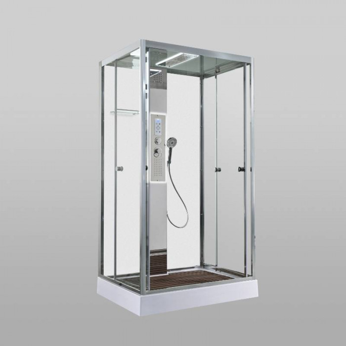 Стильная душевая кабина AvaCan сочетает в себе высокую функциональность, практичность и надежность. При изготовлении применяется безопасное закаленное стекло, надежно фиксируемое алюминиевым профилем.Профиль сделан из алюминия повышенной прочности. Сборка без силикона (увеличивает срок службы, защищает от протечек), внутренняя сборка (облегчает установку и ревизию; позволяет установить в ограниченном пространстве и обойтись без демонтажа других сантехнических приборов), смеситель резьбовой (без хомутов). Съемный экран поддона (позволяет осуществлять подключение и ревизию сифона).Двойные металлические ролики дверей (распределение нагрузки на два ролика, увеличивают срок службы). Душевая штанга(позволяет регулировать по высоте ручную лейку), ручная арома-лейка с витамином С (картридж в комплекте,есть возможность замены или удаления картриджа), полочки(из стекла, с ограничителем), сифон с гидрозатвором, сенсорный пульт управления с функциями: блютуз, LED подсветка, радио, вытяжка, гидромассаж спины, тропический (верхний) душ.