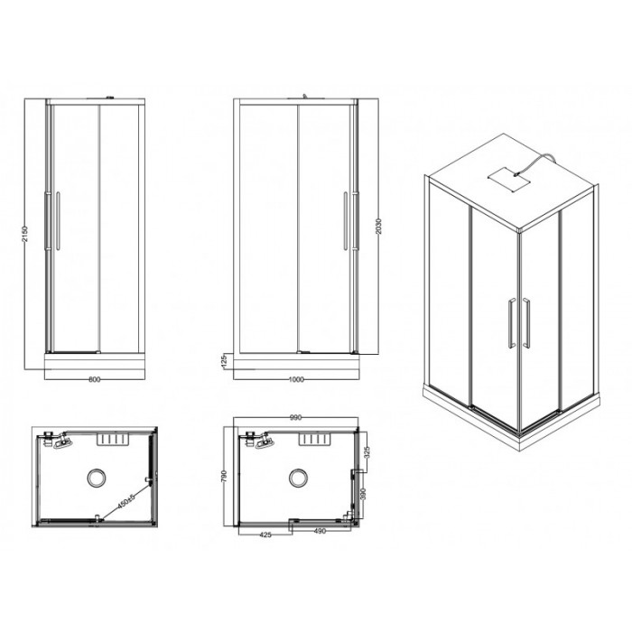 Матовый черный алюминиевый профиль. Прямоугольная 1 год алюминий раздвижная прозрачное низкий 12.5 стекло 5 регулируемые ножки Объем (м3) 0.37 сифон, слив-перелив Испания