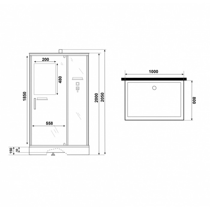 Современная и надёжная модель для просторной ванной комнаты — размер 100×80×205 см.