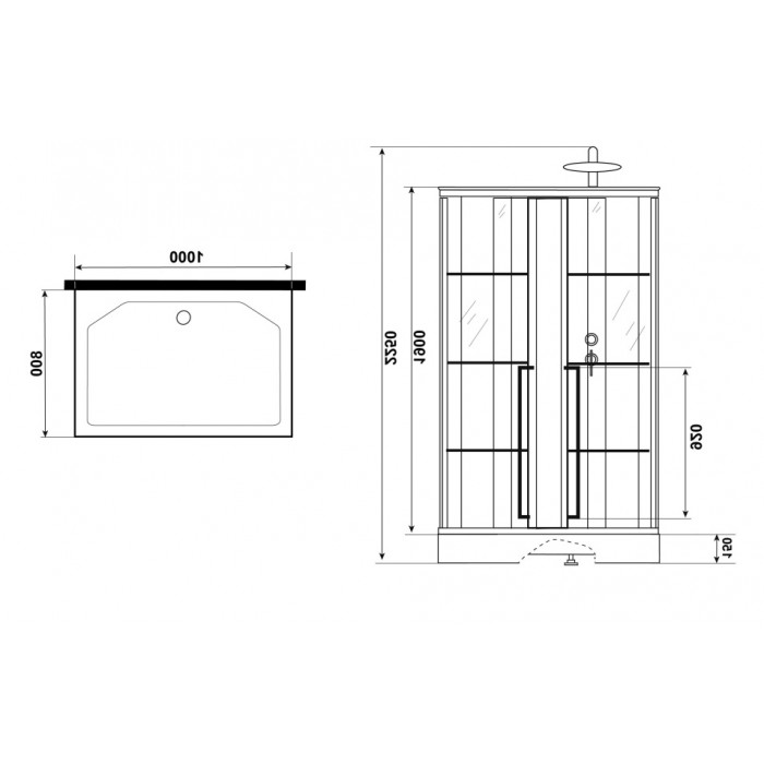 Поддон усиленный акриловый высота от пола до бортика 15 см, глубина 5 см. По периметру поддона есть бортик и дренажные каналы. Чаша поддона установлена на железный прочный каркас с регулируемыми по высоте ножками. Максимальная нагрузка на поддон до 300 кг.