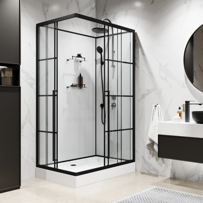 Душевая кабина Niagara Standart ST100/80/15QR/KL/BKT (100х80х225) низкий поддон (15см), черный, стекло прозрачное двойные ролики, задние стенки 4мм, спо центру ближе к задней стенке, заглушка слива черного цвета. Ручка двери длина 92см металл. Рамка задней стенки проложена по всему периметру. Задние стенки не взаимозаменяемы, двери не взаимозаменяемы из -за рисунка. Длина шланга ручной лейки 145см. полка 32*9,толщина 6мм, ручная лейка 3-х режимная Душевая кабина Niagara Standart ST100/80/15QR/KL/BKT (1000х800х2250) без крыши. Форма прямоугольная. Двери раздвижные. Высота с учетом тропического душа 225 см. Внутренняя высота 193 см. Правое расположение, (задние стенки и двери не взаимозаменяемы). Профиль алюминиевый черный матовый. Остекление: закаленное стекло. Лицевые стела прозрачные 5 мм с рисунком клетка. Задние стенки белые крашенные 4 мм. Поддон низкий (15 см, глубина 2-4 см) усиленный, выдерживает нагрузку до 350 кг. Слив по центру ближе к задней стенке, диаметр 5 см. Бессиликоновая сборка за счет дренажных каналов и бортиков. Вода не скапливается, что исключает образование плесени и грибков. Комплектация: - тропический душ с самоочищающимися форсунками; - ручная лейка 3-х режимная самоочищающимися форсунками; - шланг ручной лейки 145 см; - стеклянные полки с металлическими бортиками - 2 шт. Размер 32*9 см, толщина стекла 6 мм. - металлические ручки длиной 92 см; - двойные ролики; - заглушка слива черного цвета