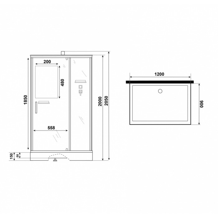 Современная и надёжная модель для просторной ванной комнаты — размер 120×90×205 см.