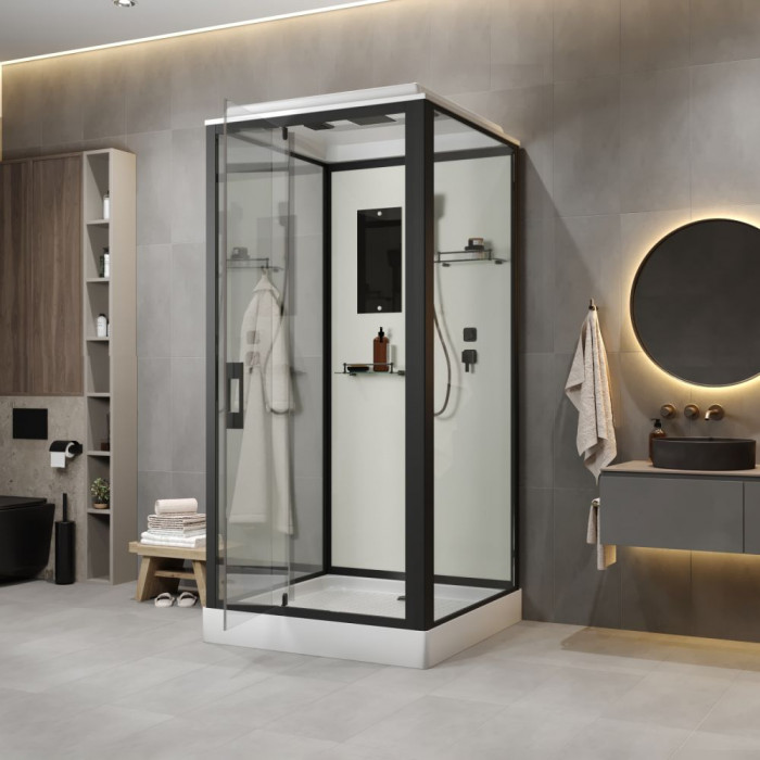 Душевая кабина Niagara Standart ST90/15Q/BL (90х90х215) квадрат, поддон 15см, распашная, профиль черный