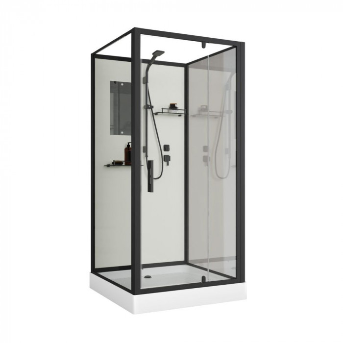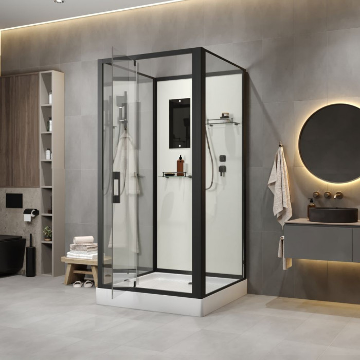 Душевая кабина Niagara Standart ST90/15Q/BL/BK (90х90х200) квадрат, поддон 15см, распашная, профиль черный, без крыши
