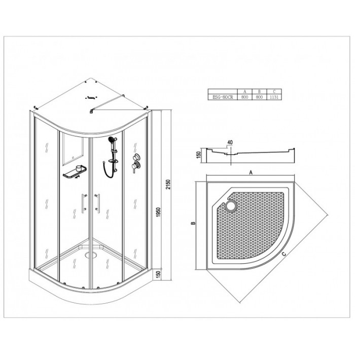 Душевая кабина Esbano ESG-80CR хром Кабина полукруглая ESBANO ESG-80CR (с крышей)