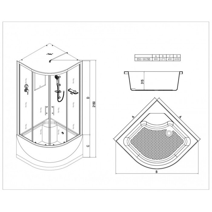 Душевая кабина Esbano ESG-90CRB хром Кабина полукруглая ESBANO ESG-90CRB (с крышей)