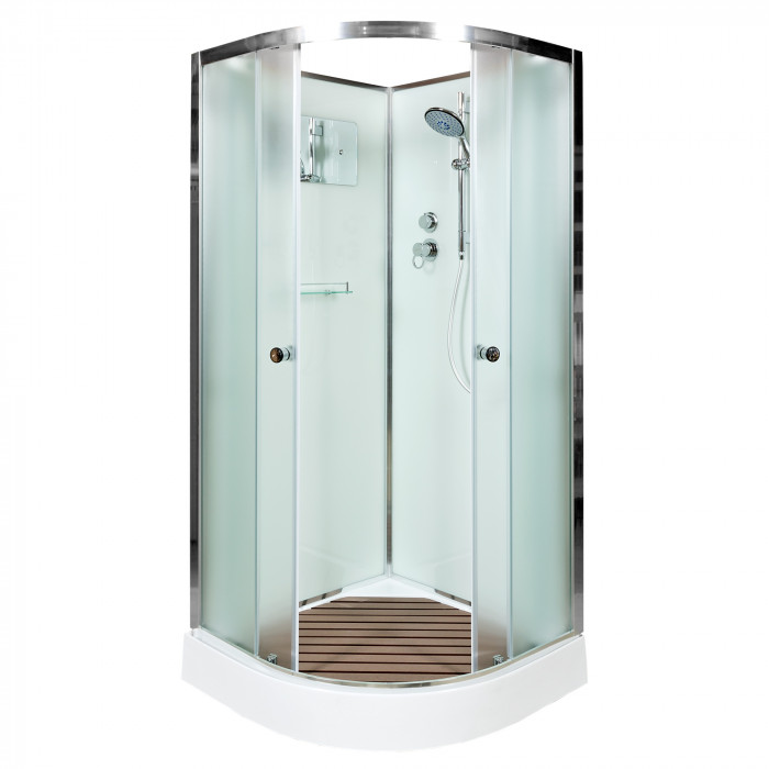 Стильная душевая кабина со сборкой изнутри AvaCan D09 сочетает в себе высокую функциональность, практичность и надежность. Для изготовления применяют безопасное закаленное стекло толщиной 4 мм, надежно фиксируемое алюминиевым профилем. Цвет профиля хром. В комплекте сифон, полочка, зеркало, смеситель, переключатель режимов, душевой гарнитур, деревянная вставка в поддон,